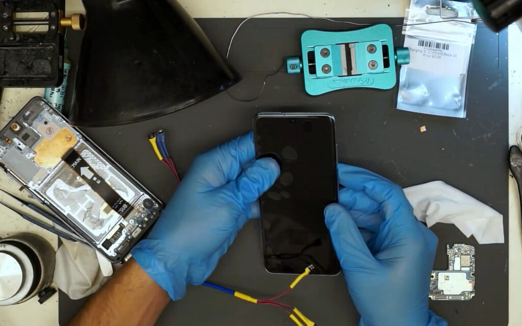 Trabalhos: substituição de conectores, recuperação de trilhas, reballing/troca de PMIC, instalação de bateria nova com calibração, teste de perfis de carga (PD/QC, proprietários).